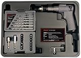 This Ingersoll Rand mini drill/driver combo set delivers big power in tight spaces. Hard-hitting five-vane motor delivers smooth and robust performance with double-sided, adjustable speed settings for a broad range of applications. Double-bearing construction ensures longer life, impressive balance, and reduced vibration. Chuck Size (in.): 1/4, Keyless Chuck: No, Air Consumption (CFM): 1.92, Speed (RPM): 1,800, Air Inlet Size (in.): 1/4, Min. Hose Size (in.): 3/8, Reversible: Yes, Side Handle: No, Tool Length (in.): 7 1/4